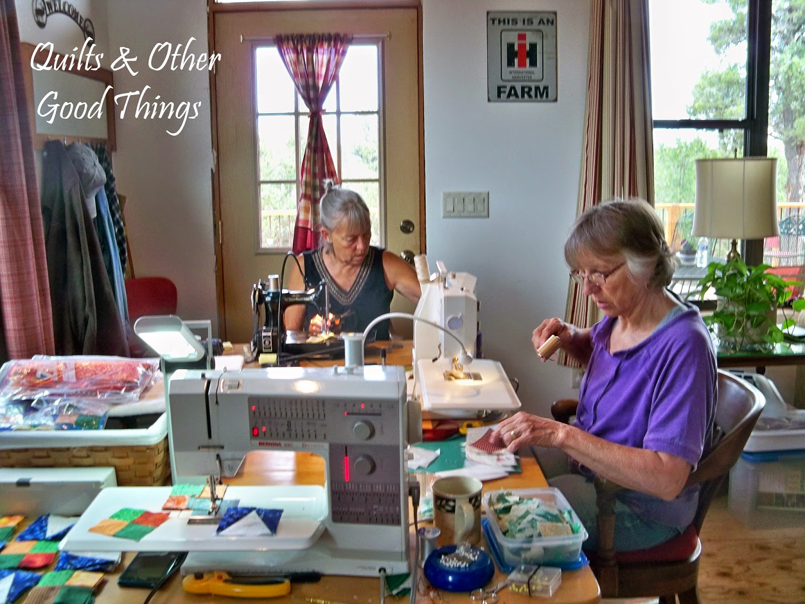 Joyce was stitching corners on units for a quilt with some bow tie units as her "leaders and enders".